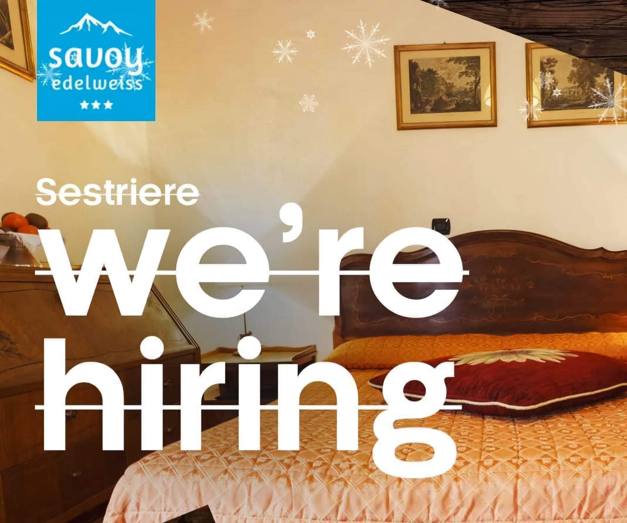Inviaci la tua candidatura via e-mail: info@hotelsavoysestriere.com o tramite Whatsapp: +39 3939693609
